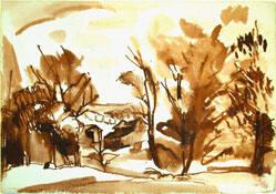 MediumRed and brown Ink with graphite on paper