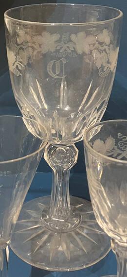 Port glass, engraved with "C" and vine and berry design
